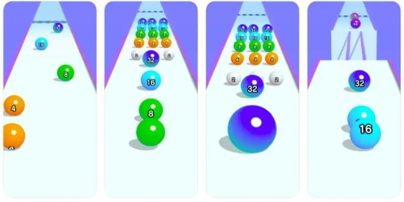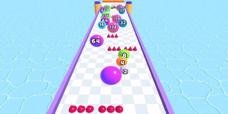 Step 3: When your ball rolls into a block with the same number, it merges. The new ball’s number is doubled. For example, two “8”s become a “16.”