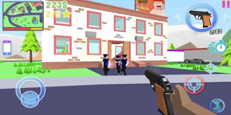 Visually, it’s not realistic, but that’s the charm. Characters are stiff, buildings look like toys, and colors pop like someone dumped a box of crayons on the world. Even the music feels like background noise from a prank video. It’s not polished, but it’s packed with fun.